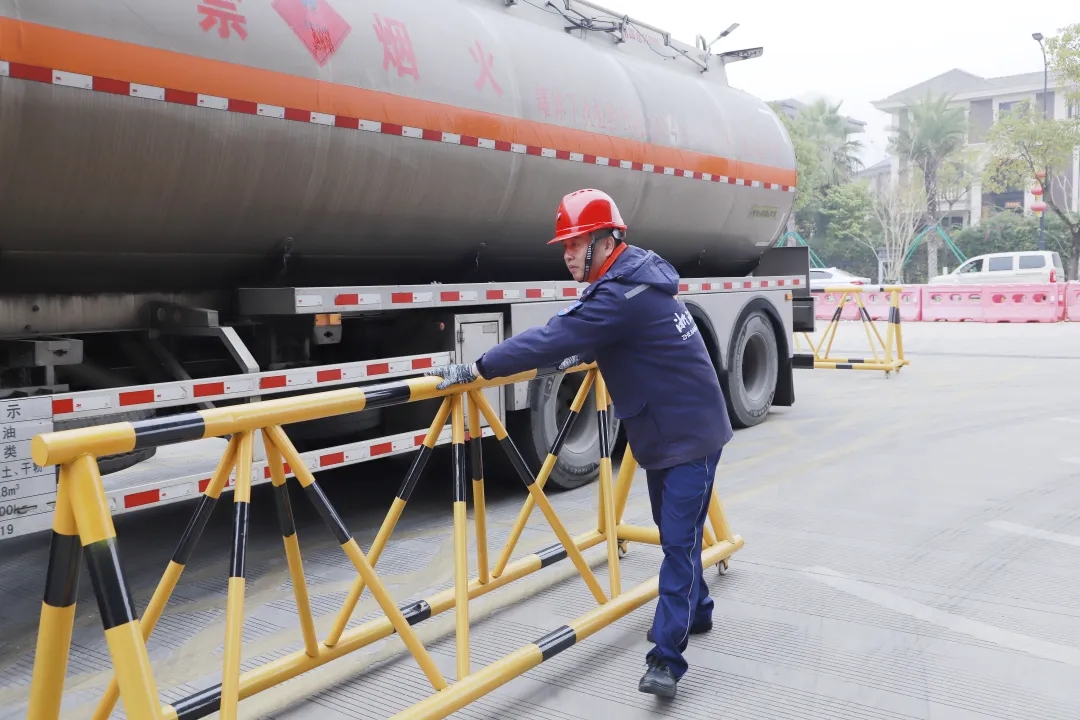 浙石油溫州樂清云門站站經理錢小龍,做好隔離防護,確保卸油安全。 鄭藝帥 攝