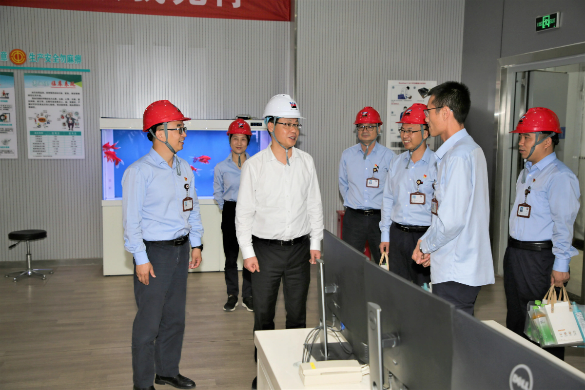 集團(tuán)黨委書記、董事長(zhǎng)劉盛輝走進(jìn)集控室了解迎峰度夏能源保供情況。 徐新蘇 攝