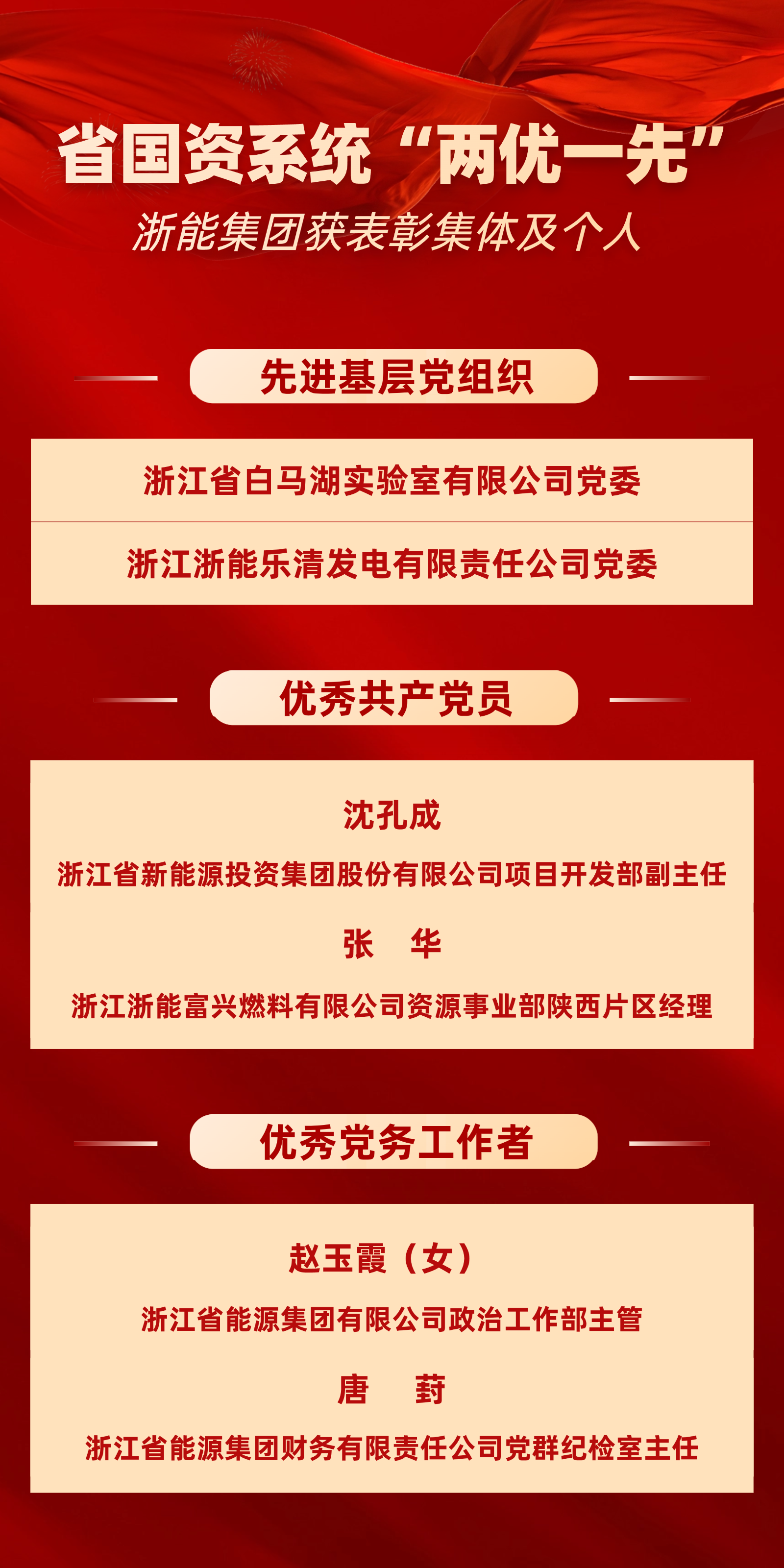 喜報!浙能集團這些集體和個人獲省國資系統“兩優一先”表彰