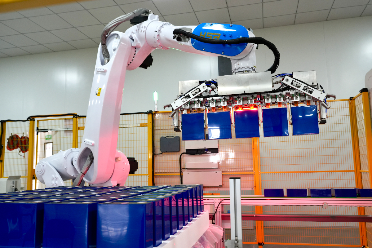 機(jī)器人電池抓取作業(yè)中。 童茜 攝