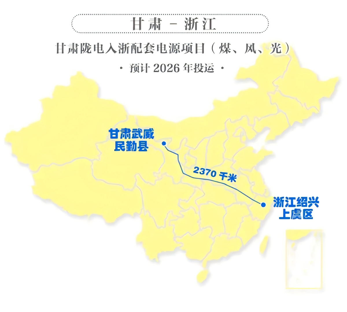 該工程動(dòng)態(tài)投資約353億元,線路全長(zhǎng)約2370千米,輸送容量800萬千瓦,計(jì)劃于2026年投運(yùn),是國(guó)家電網(wǎng)公司貫徹落實(shí)黨的二十屆三中全會(huì)精神,推動(dòng)新型能源體系和新型電力系統(tǒng)建設(shè)的重要舉措。項(xiàng)目還在甘肅配套建設(shè)大型能源基地,由浙能集團(tuán)作為浙江方牽頭企業(yè)參與合作開發(fā),聚焦高質(zhì)量能源保供和高質(zhì)量綠色轉(zhuǎn)型兩大核心任務(wù),做強(qiáng)做優(yōu)做大能源“地瓜經(jīng)濟(jì)”,屆時(shí)每年將有約360億千瓦時(shí)的電量送往浙江。