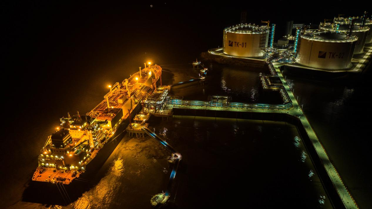 位于東海之濱的浙能溫州LNG接收站連夜奮戰接卸,全力保障浙南、浙西和閩北地區的天然氣能源供應。 溫州LNG公司 提供