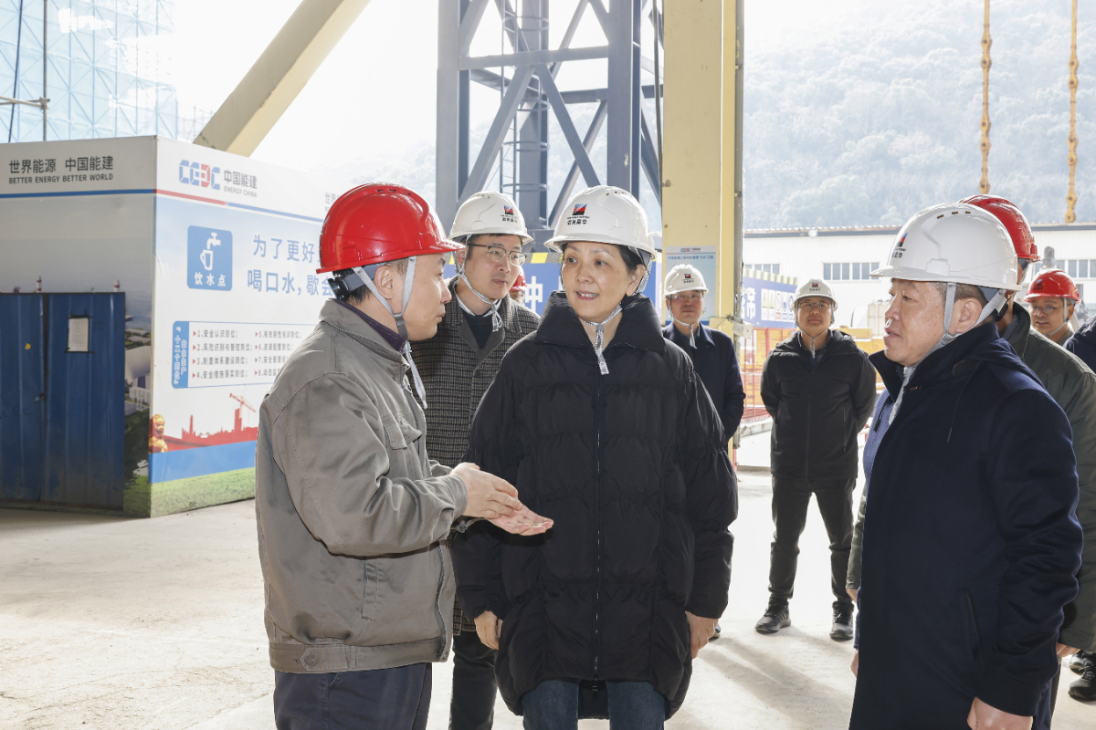 錢哲一行首先深入嘉電四期9號機組基建現場,實地了解當前工程建設、現場安全管理等方面情況,對目前工程進度給予了充分肯定,并對參建各方的辛勤付出表示慰問。