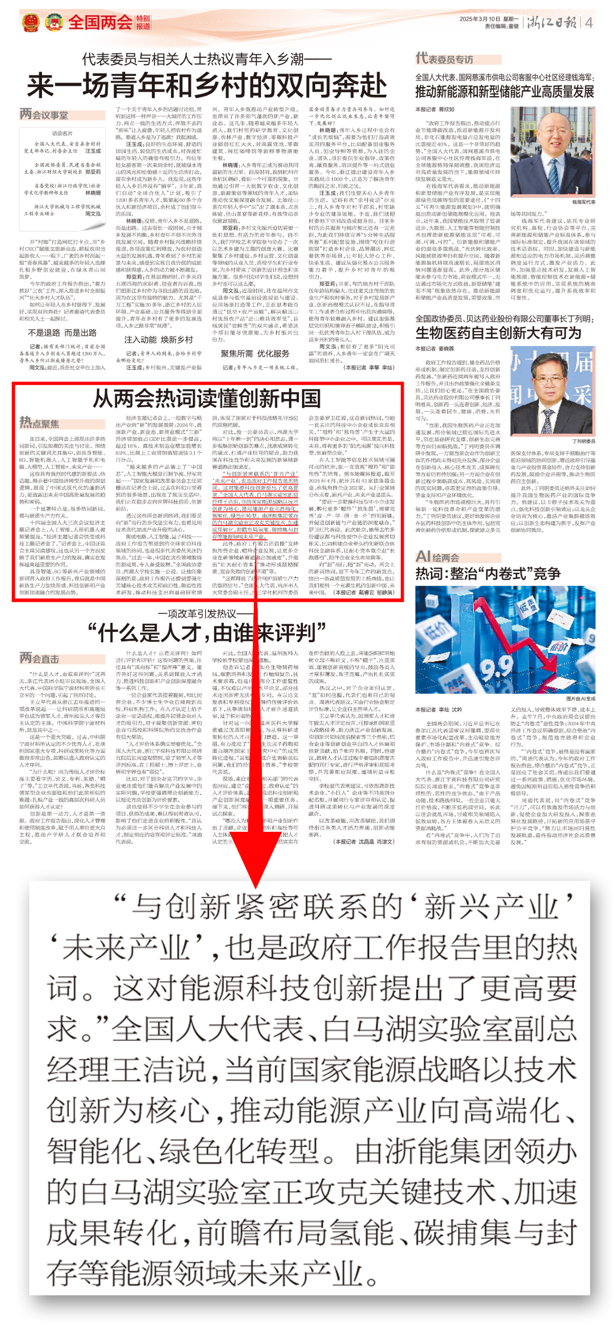《浙江日報》全國兩會特別報道《從兩會熱詞讀懂創新中國》再次聚焦全國人大代表、浙能集團王潔同志。 浙江日報 圖