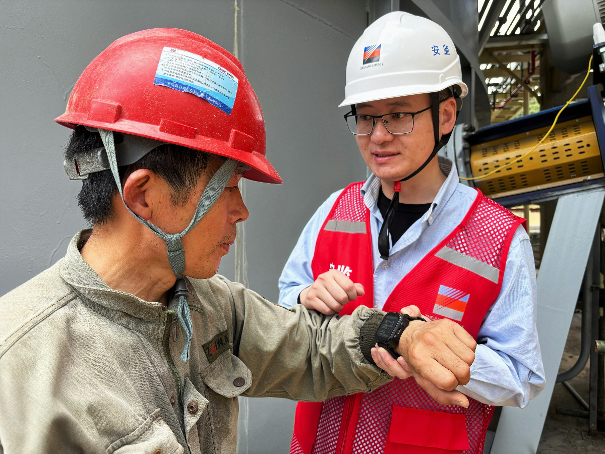 腕間智聯守護“生命盲區”。有限空間作業的風險常被稱為“看不見的殺手”。為此,浙江電建嘉興項目部質安處處長陳玉龍對吸收塔內的防腐作業格外重視。