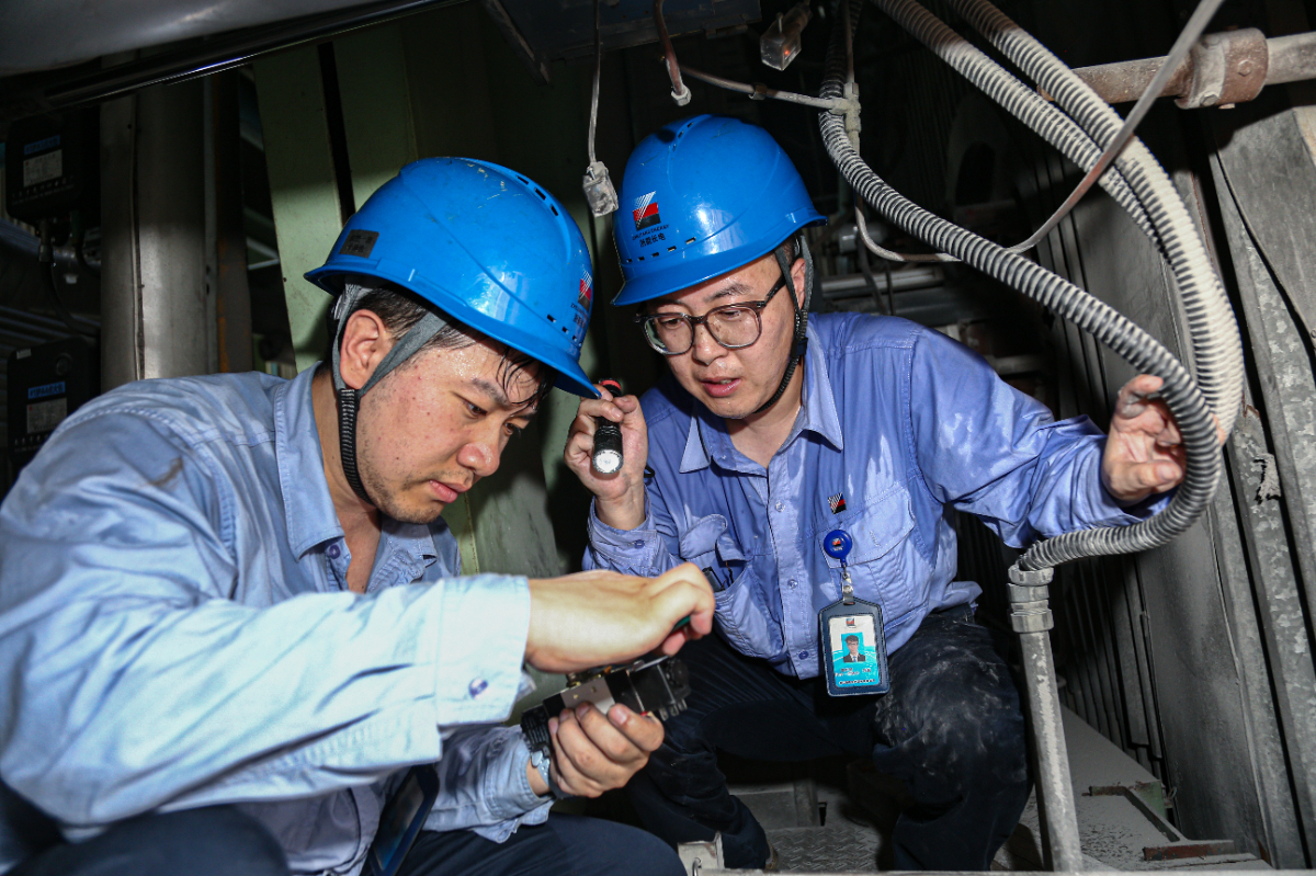 浙能長電儀控專業(yè)人員在狹小空間內(nèi)檢修點火槍推進(jìn)電磁閥。 鄭慧瑗 攝
