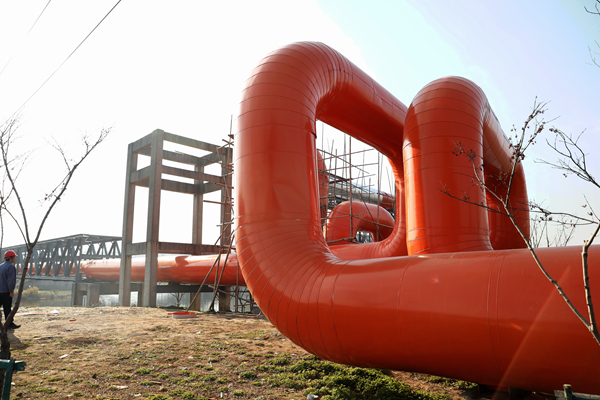 3月10日,濱電每小時供熱平均流量再創新高,圖為濱電供熱管道。 徐明敏 攝