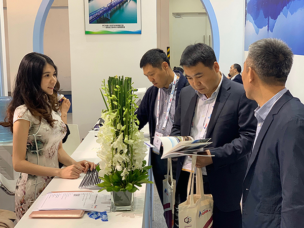 浙能集團展廳內,超大的LED顯示屏、大氣的墻面宣傳版面,小橋流水,中西合璧,配上燈箱等小幅宣傳版面、立柱形象墻,賞心悅目的茶道表演吸引了眾多參展商的駐足。兩位現場講解員流利清晰、細致到位的講解也讓參觀者更詳細具體地了解浙能天然氣產業的成長歷史和發展狀況。