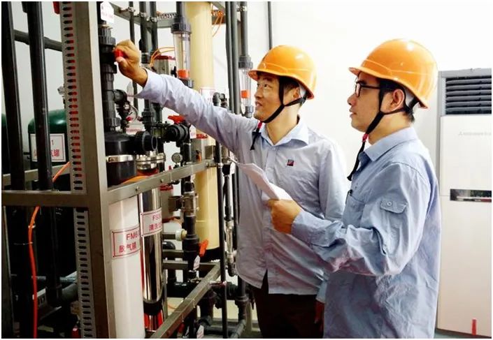 ▲浙能技術研究院環化專業人員在長興中試基地膜實驗室調試設備