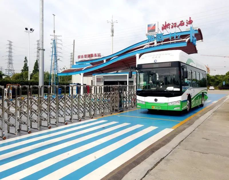 浙石油嘉善客運(yùn)中心東綜合供能服務(wù)站為氫能源公交車(chē)提供加氫服務(wù)。