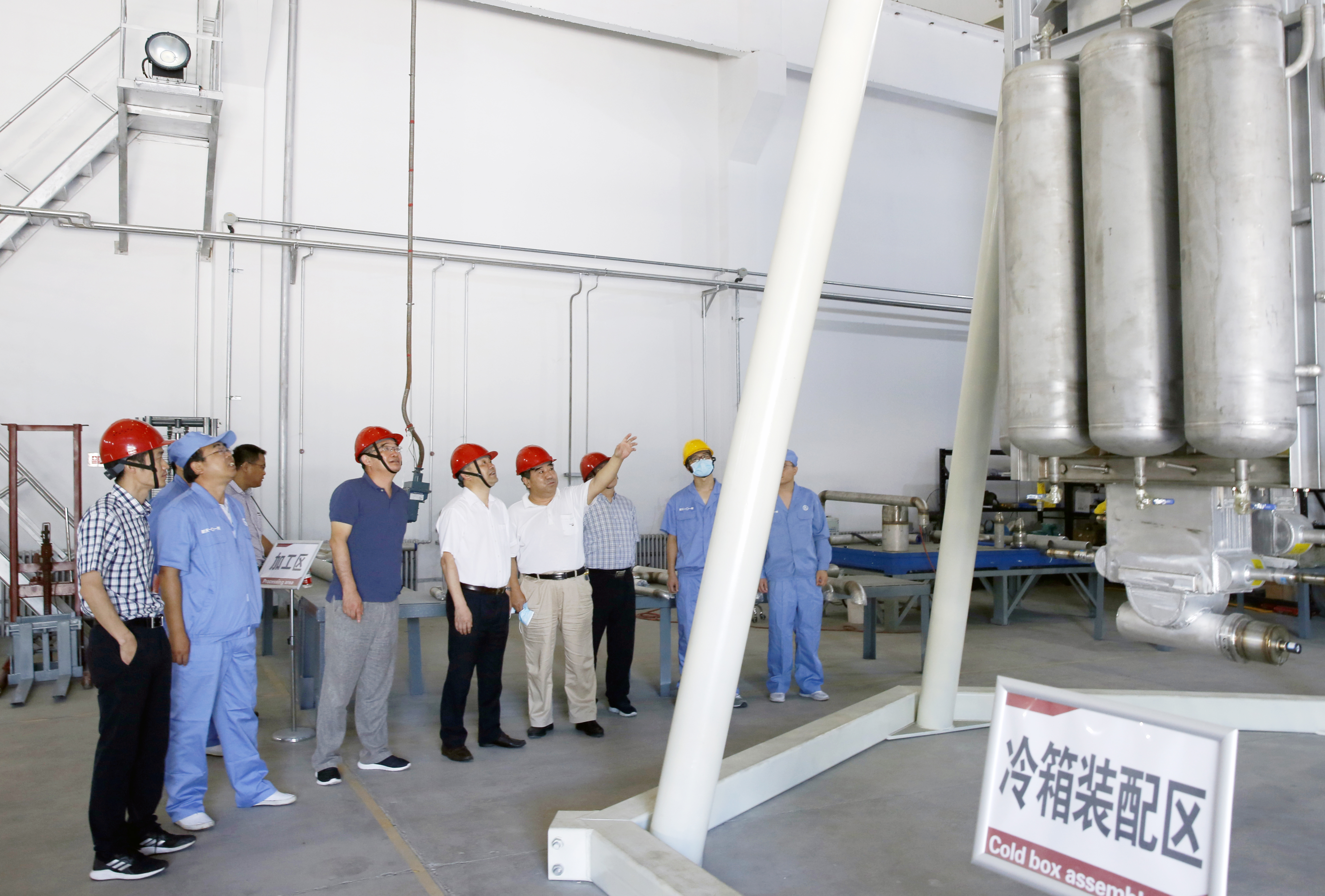 圖為浙能集團(tuán)組織專(zhuān)家到101所檢查氫液化系統(tǒng)冷箱集成進(jìn)展情況。陳夏 攝