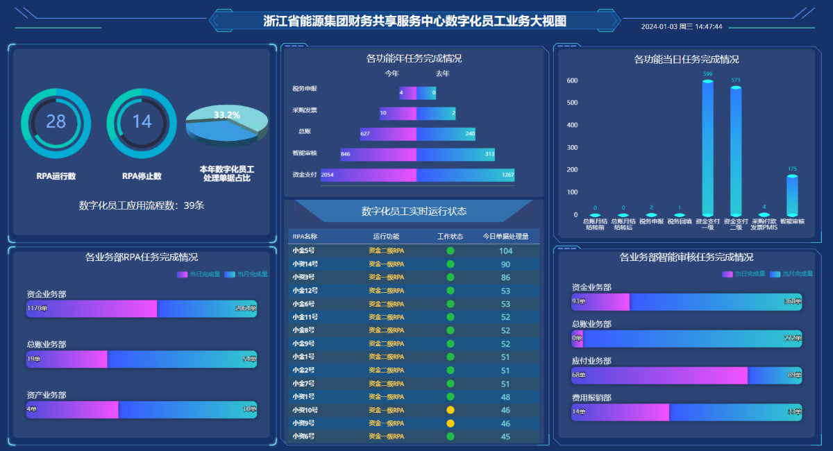 浙能財(cái)務(wù)共享運(yùn)營平臺(tái)上線以來已推廣21批線上運(yùn)行427家單位,開發(fā)129支標(biāo)準(zhǔn)化流程,與SAP等20個(gè)業(yè)財(cái)系統(tǒng)實(shí)現(xiàn)集成,覆蓋用戶3萬余人,從無到有打造以智能化、流程和數(shù)據(jù)驅(qū)動(dòng)、業(yè)財(cái)稅資檔一體貫通、財(cái)務(wù)風(fēng)險(xiǎn)控制和財(cái)務(wù)人才培養(yǎng)為主,富有浙能特色、不斷迭代升級(jí)、賦能價(jià)值創(chuàng)造的財(cái)務(wù)共享金名片,走在浙江國資國企前列。在數(shù)智化方面,該平臺(tái)采用統(tǒng)一架構(gòu)的端到端數(shù)字化平臺(tái),利用IPA智能流程自動(dòng)化、OCR智能審核、AI、NLP自然語言處理、全場(chǎng)景遠(yuǎn)程辦公等先進(jìn)技術(shù)手段,搭建起流程、審核、運(yùn)營和數(shù)治四個(gè)方面組成的智能應(yīng)用體系,實(shí)現(xiàn)憑證和支付自動(dòng)化率雙雙超過99%,其中數(shù)字員工、數(shù)字化監(jiān)督看板、智能語音提單、智能派單、智能客服等一批功能應(yīng)用頗具特色、業(yè)內(nèi)領(lǐng)先,榮獲上國會(huì)“2022年智能財(cái)務(wù)最佳實(shí)踐年度綜合大獎(jiǎng)”。