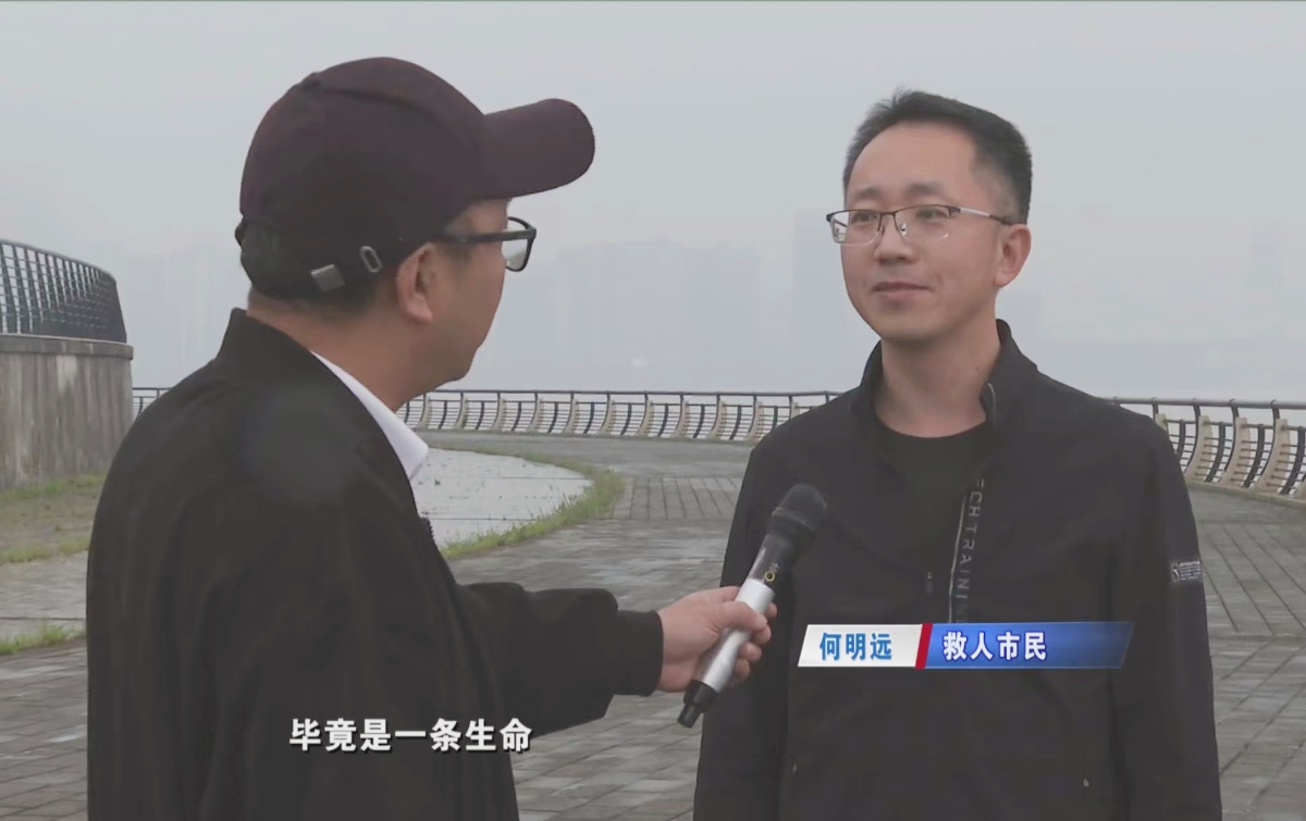 “當(dāng)時(shí)落水者已經(jīng)沒有力氣,腿部肌肉抽筋,水面看不見人。”何明遠(yuǎn)憑借微弱的聲音辨別位置,幾分鐘后終于在江中心的亂草叢中找到,并使出全身力量 ,拉著比自身重出許多的落水者艱難地游到岸邊。